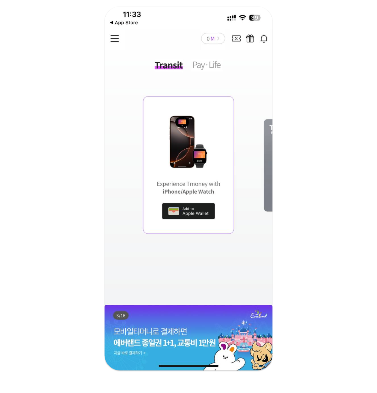 Без этого пополнение через Apple Pay недоступно. Но саму карту можно добавить через приложение Mobile Tmoney в гостевом режиме, а баланс пополнить наличными через автомат на станции метро.