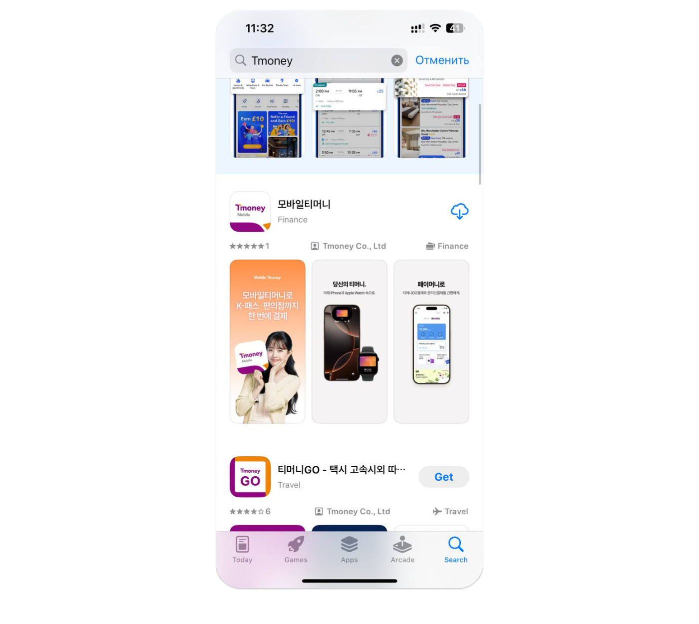 В App Store ищите 모바일티머니 или «Tmoney», или перейдите по ссылке